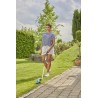 Die Rasenkantenschere zeichnet sich durch eine schlanke Bauweise aus. Der ergonomische Griff liegt bequem in der Hand und lässt sich für eine optimale Arbeitshaltung neigen. Die Rollen ermöglichen zudem eine aufrechte Haltung während der Arbeit, ohne dass man sich bücken muss.