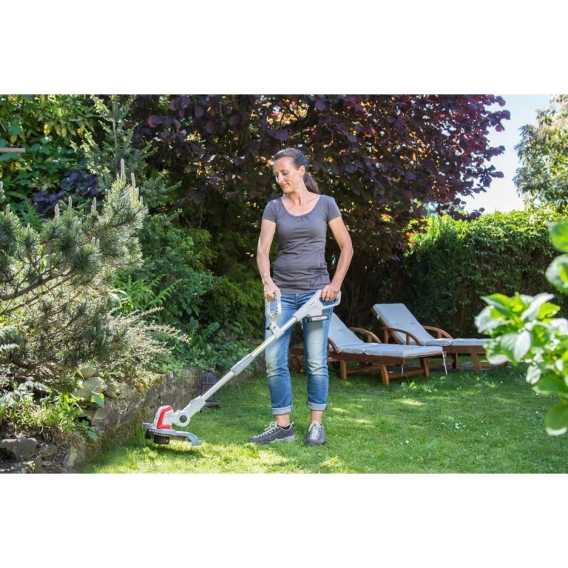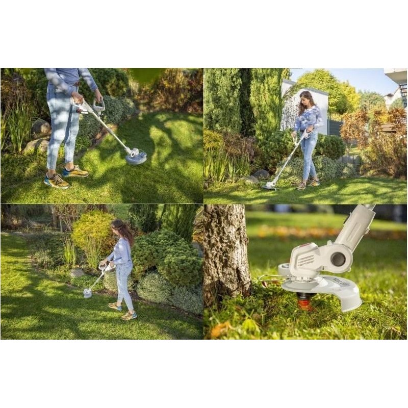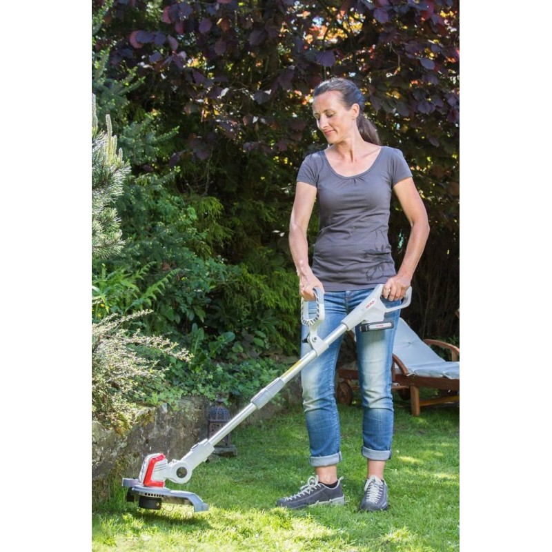 - Die Führungsrolle und der drehbare obere Griff ermöglichen ein präzises und komfortables Trimmen der Rasenkanten.