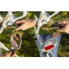 - Das Schneidsystem besteht aus einer Nylonklinge; im Zusatzgriff befinden sich 20 Ersatzklingen.