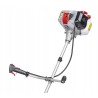 Die Motorsense wurde mit Blick auf den Komfort des Benutzers entwickelt. Im Lieferumfang sind professionelle Schultergurte enthalten, die die Ermüdung bei lang andauernden Arbeiten verringern. Darüber hinaus ermöglicht die Neigungsverstellung des Lenkers eine Anpassung der Position an individuelle Bedürfnisse, was den Bedienkomfort erhöht.