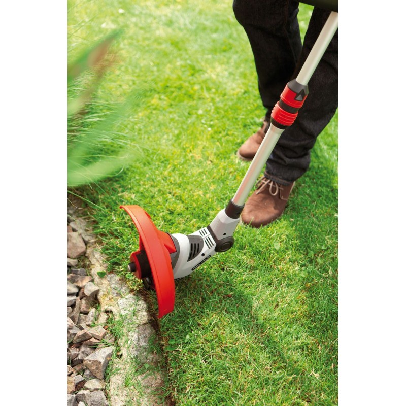 Präzises Trimmen in jeder Position. Teleskopierbares Führungsrohr aus Aluminium mit verstellbarem Griff. Kopf mit einstellbarem Neigungswinkel.