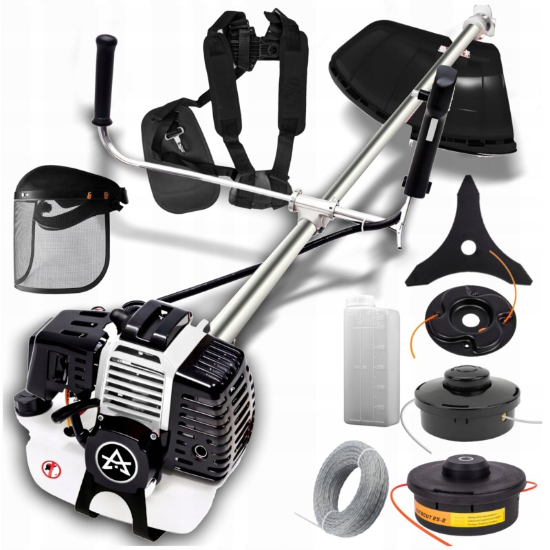 Im Lieferumfang enthalten sind zwei Arten von halbautomatischen Mähköpfen, eine Dreizahnscheibe, ein Mähkopfschutz, ein Tragegurt sowie ein Schutzvisier. Damit haben Sie alles, was Sie für komfortables und sicheres Mähen benötigen, was diese Motorsense zu einem vielseitigen Werkzeug in Ihrem Garten macht.