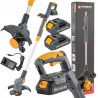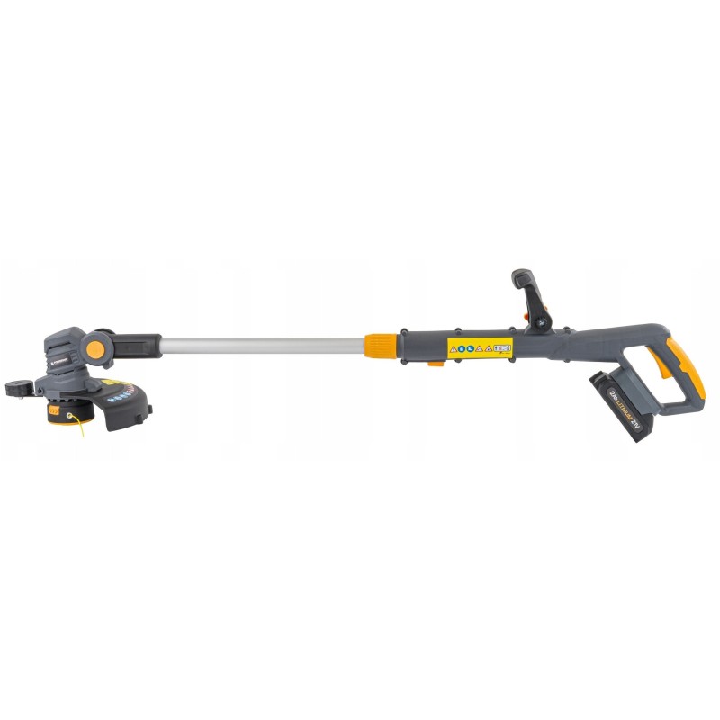 Das Gerät ist mit zwei Lithium-Ionen-Akkus mit einer Kapazität von jeweils 2 Ah ausgestattet, was einen lang anhaltenden Betrieb ohne Memory-Effekt gewährleistet. Dank einer Versorgungsspannung von 21 V garantiert der Rasentrimmer hohe Leistung und Zuverlässigkeit unter allen Bedingungen.