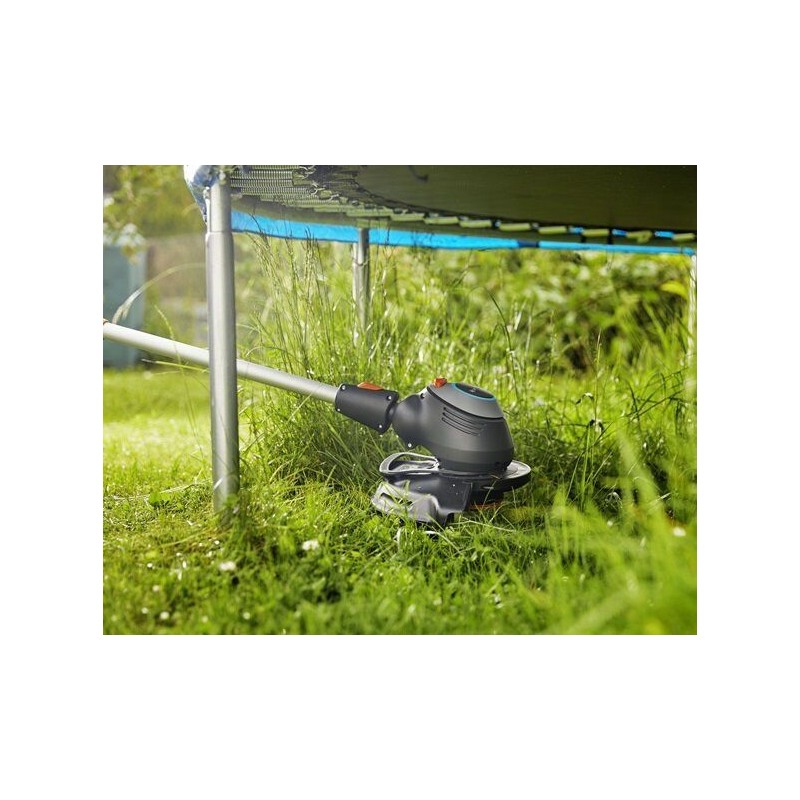 Zusätzliche Merkmale: Zusatzgriff, klappbarer Schutz gegen Beschädigung der Pflanzen, Teleskopstiel, schwenkbarer Mähkopf (90°)