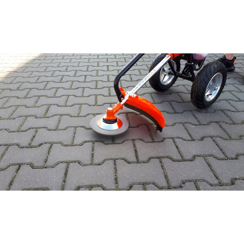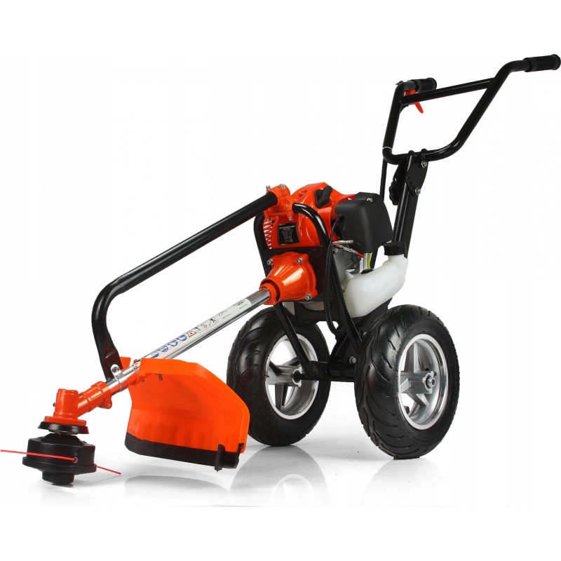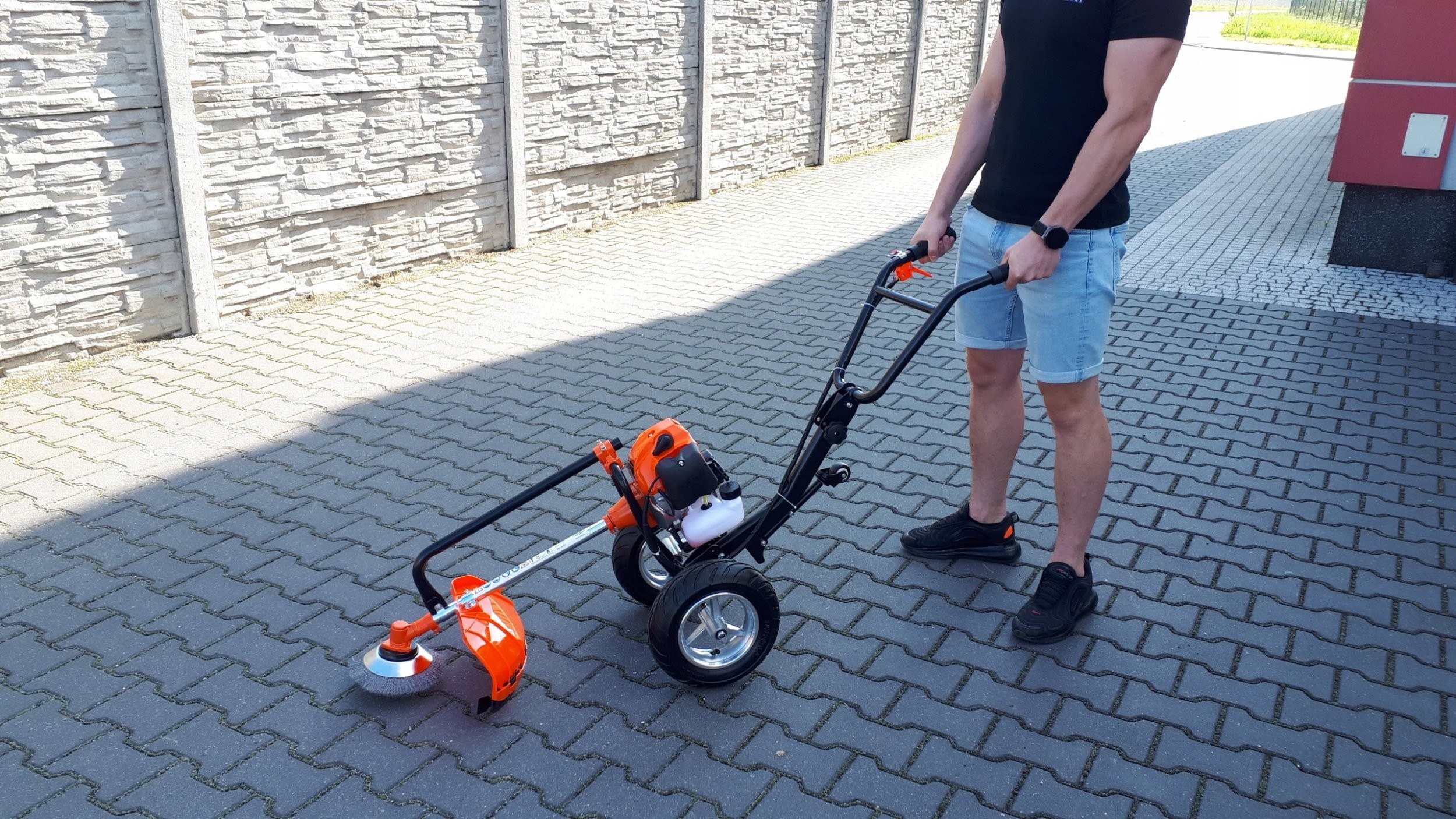 Lässt sich hervorragend in unwegsamem Gelände, beim Mähen von Wiesen und auf unebenem Untergrund führen. Die stabile, verstärkte Aluminiumkonstruktion ermöglicht das Bewältigen von unwegsamem Gelände und das Schneiden verschiedener Vegetationsarten. Dank des geringen Gewichts ist das Manövrieren kein Problem.