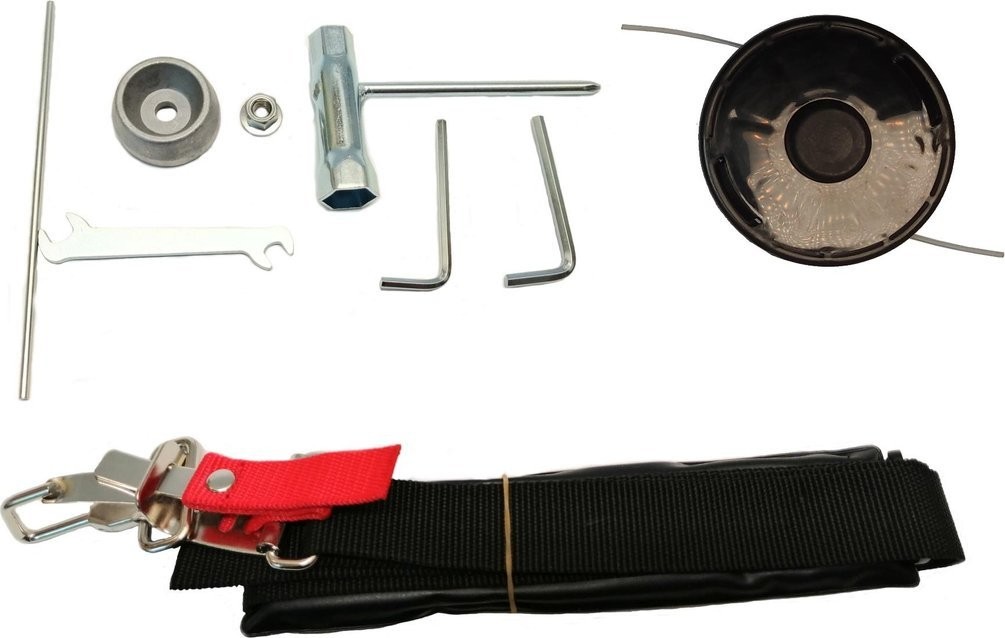 Japanische Rasentrimmer. Ein leichter und handlicher Benzin-Rasentrimmer zum Mähen von Grünflächen an Stellen, die mit einem Benzinrasenmäher nicht erreichbar sind. Ein robustes Gerät, das einen herkömmlichen Spindelmäher ergänzt