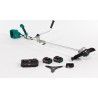 Akkusystem: AkuMultiSystem 20 V. Motortyp: Elektromotor, mit Bürsten. Spannung: 40 V (2 x 20 V). Akku(s) im Lieferumfang enthalten: ja. Akkutyp: Lithium-Ionen. Akkukapazität: 4,0 Ah. Anzahl der Akkus im Lieferumfang: 2 Stück. Ladegerät im Lieferumfang: ja, Doppel-Ladegerät. Maximale Drehzahl: 6500 U/min. Schnittbreite mit Fadenschneidkopf: 300 mm. Kopfart: Doppelschnur. Schnittdurchmesser mit Fadenscheibe: 255 mm. Scheibentyp: Dreizahnscheibe. Griff: V-Typ (Fahrradgriff). Tragesystem: Schultergurte. Vibrationsdämpfender Griff: nein. Führungsrohr: geteilt.