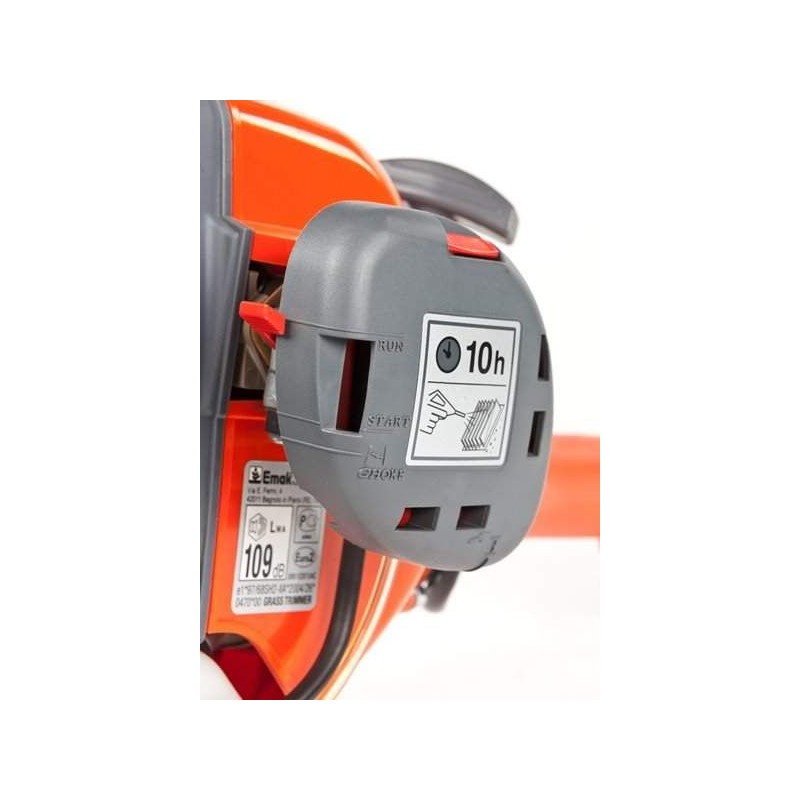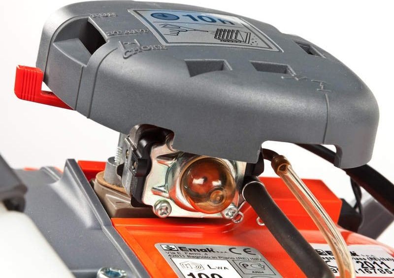 • Zum Lieferumfang gehört eine Startpumpe, die das Gemisch zum Vergaser fördert und so das Starten des Geräts mit einer minimalen Anzahl von Zügen am Startseil erleichtert.