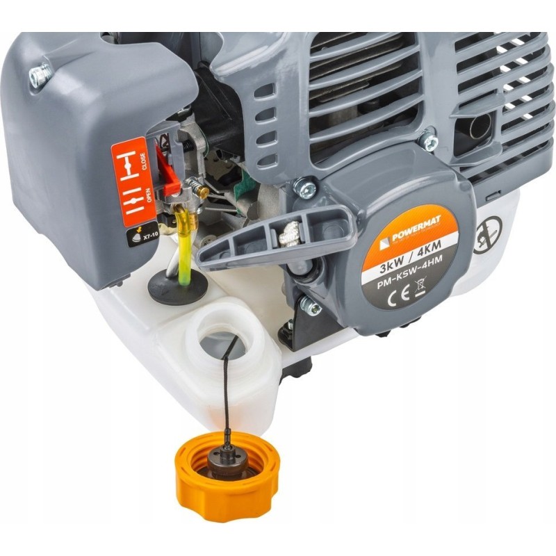 Die Powermat-Motorsense ist mit einem 42-cm³-Motor mit 4 PS ausgestattet, der für hohe Effizienz und Laufruhe sorgt, selbst unter schwierigen Bedingungen. Dank des Zweitaktmotors arbeitet das Gerät reibungslos und störungsfrei, sodass alle Gartenarbeiten schnell erledigt werden können.