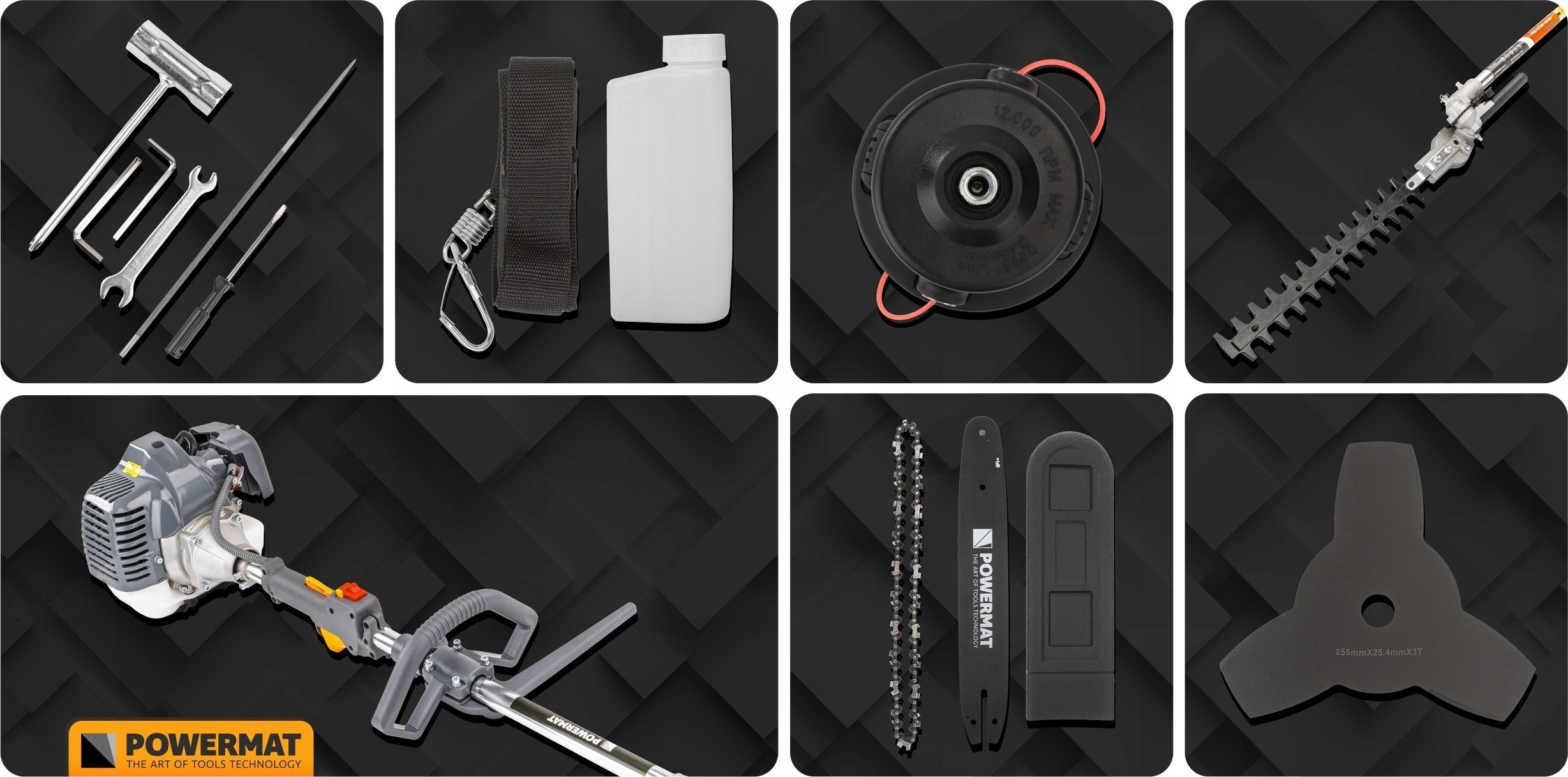 Die multifunktionale Motorsense Powermat 4W1 ist eine hervorragende Lösung für alle, die ihren Garten pflegen möchten. Dank der Kombination aus Sense, Trimmer, Kettensäge und Heckenschere wird dieses Werkzeug zu einem unersetzlichen Helfer bei der Gartenpflege. Egal, ob Sie Gras mähen, Sträucher zurückschneiden oder Äste bearbeiten müssen – diese Motorsense meistert jede Herausforderung.