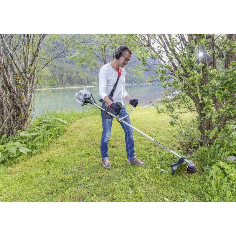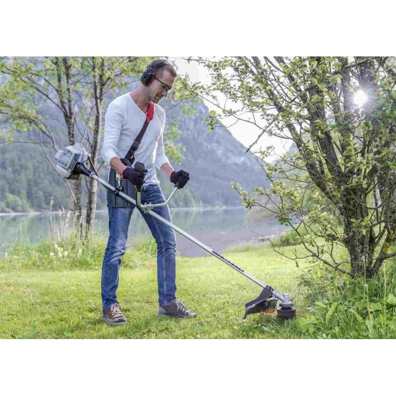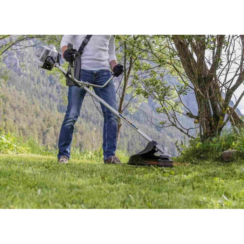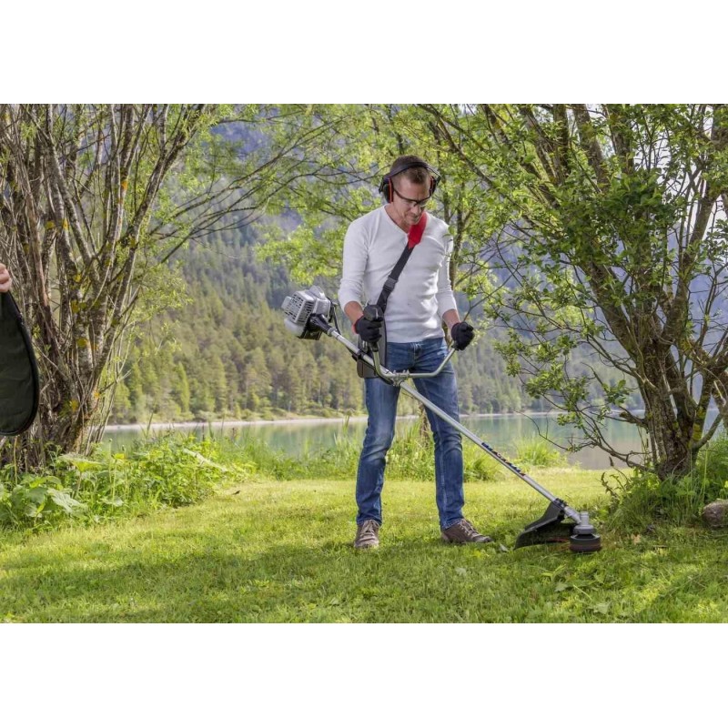 Motortyp: Verbrennungsmotor, Zweitakter. Motorhersteller: AL-KO. Hubraum: 22,5 cm³. Nennleistung des Motors: 0,7 kW. Kraftstoffgemisch (Benzin:Öl): 50:1. Schnittbreite mit Fadenschneidkopf: 410 mm. Kopfart: Doppelschnur. Mähdurchmesser mit Mähscheibe: 250 mm. Scheibentyp: Dreizahn. Griff: V-Typ (Fahrradgriff). Tragesystem: Schultergurte. Vibrationsdämpfender Griff: nein. Führungsrohr: einteilig.