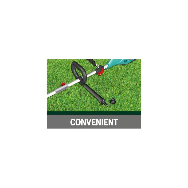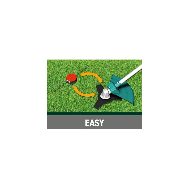 • Einfache Wahl zwischen einer Spule mit sehr starkem Schneidfaden und einem Messer