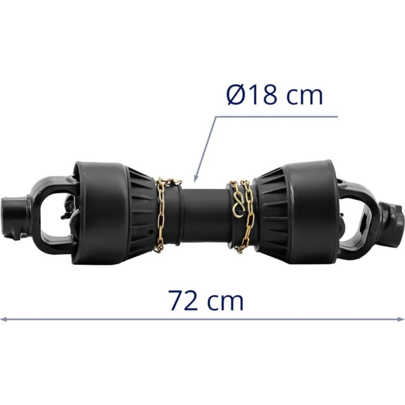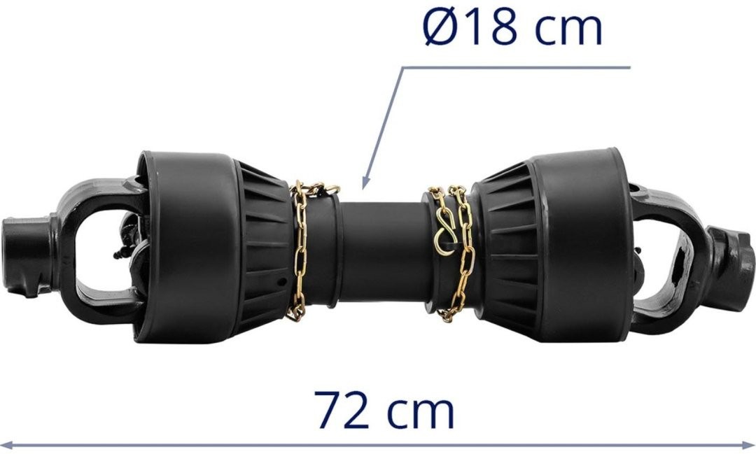 Die Zapfwelle der Marke Wiesenfield ermöglicht den sicheren Betrieb von Düngerstreuern, Feldspritzen, Band- oder Kreissägewerken, Forstseilwinden, Holzspaltern sowie ähnlichen forst- und landwirtschaftlichen Geräten. Die Zapfwelle kann an Traktoren, LKWs oder Nutzfahrzeuge angeschlossen werden. Alle Komponenten sind aus Stahl gefertigt, was einen reibungslosen Betrieb garantiert und auch den größten Herausforderungen gewachsen ist. Die Gelenk-Teleskop-Zapfwellenwelle der Kat. 6 ist im Bereich von 62–72 cm längenverstellbar. Die Welle eignet sich für viele gängige Geräte und Fahrzeuge, da sie über eine 1 3/8" -Dreieckverbindung mit 6 Zähnen auf der Antriebs- und Geräteseite verfügt. Das maximale Drehmoment beträgt 780 Nm , wodurch sie ideal für land- und forstwirtschaftliche Geräte mit niedriger bis mittlerer Leistung ist. Sie eignet sich für ein breites Anwendungsspektrum. Die Welle verfügt über eine robuste Konstruktion, deren präzise Fertigung und sorgfältig ausgewählte Materialien einen reibungslosen Betrieb gewährleisten.