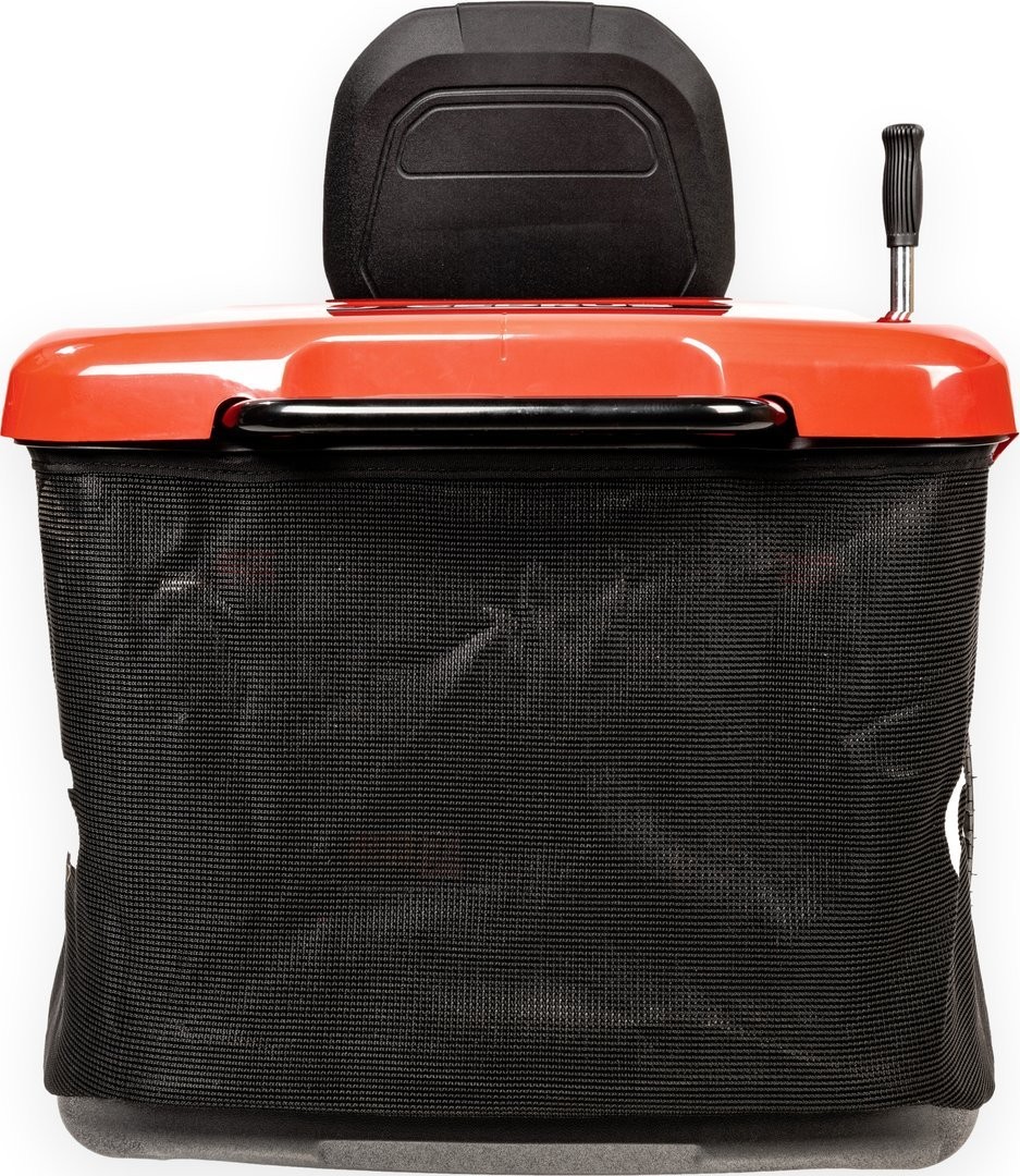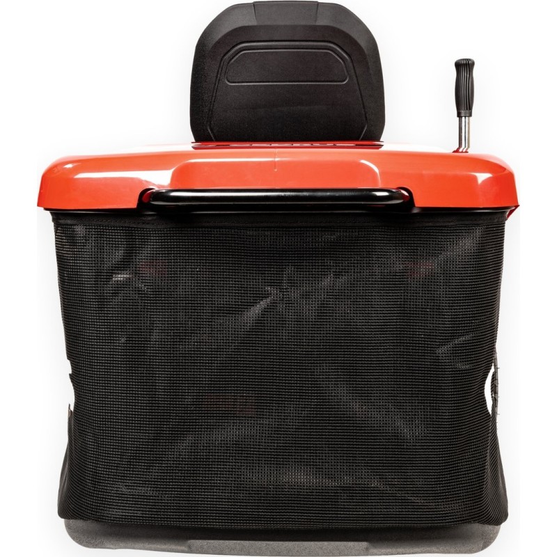• Großer 245-Liter-Fangkorb, der vom Fahrersitz aus per Hebel entleert werden kann.