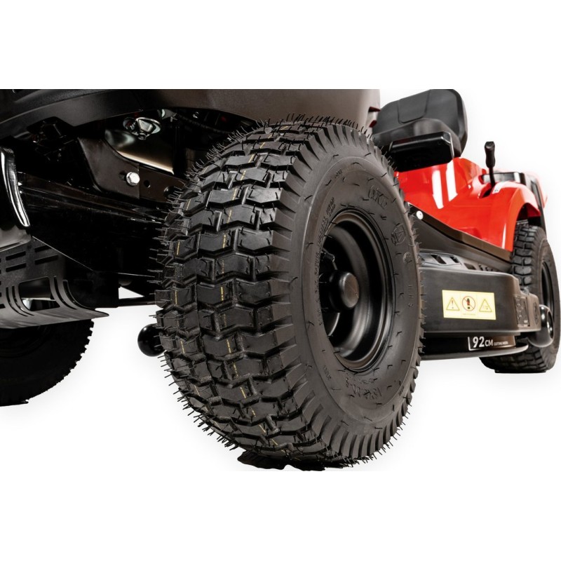 • Die breiten Räder verfügen über ein spezielles Profil, das das Gras während der Arbeit nicht beschädigt.