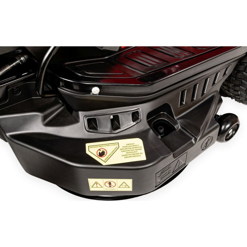 • Das Mähaggregat ist mit einem Antivibrationssystem sowie zwei Stützrädern ausgestattet, die den Rasen vor dem „Skalpierungseffekt“ schützen.
