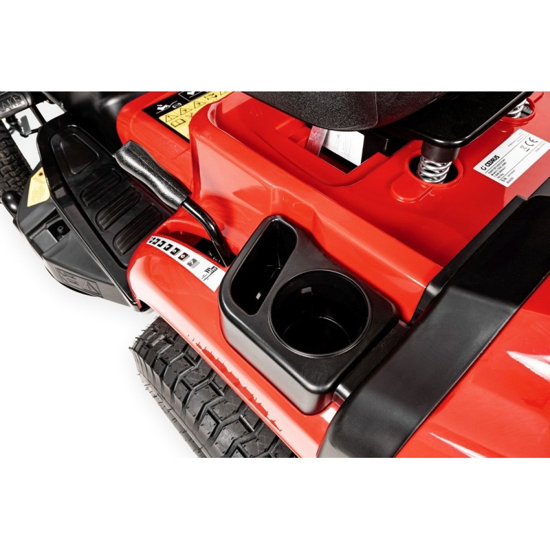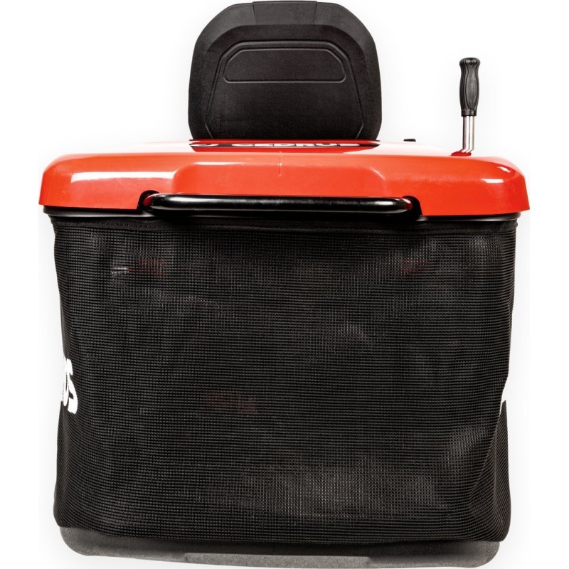 • Großer Grasfangkorb mit 245 l Fassungsvermögen, der vom Fahrersitz aus per Hebel entleert werden kann.