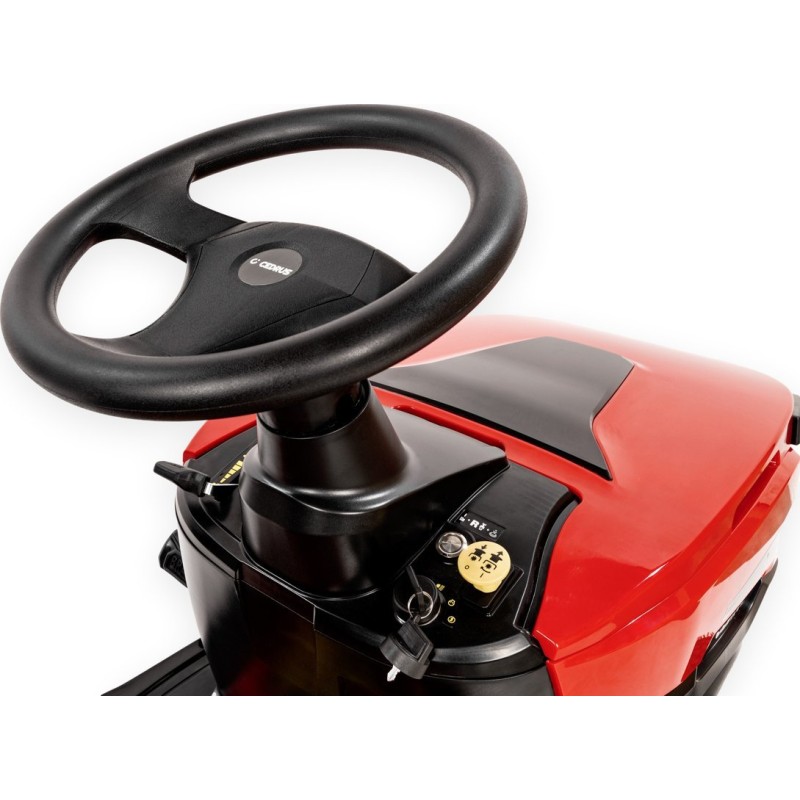• Das ergonomische Design erleichtert dem Bediener die Arbeit dank eines breiten Einstiegs, eines hoch angeordneten Lenkrads und eines verstellbaren Sitzes.