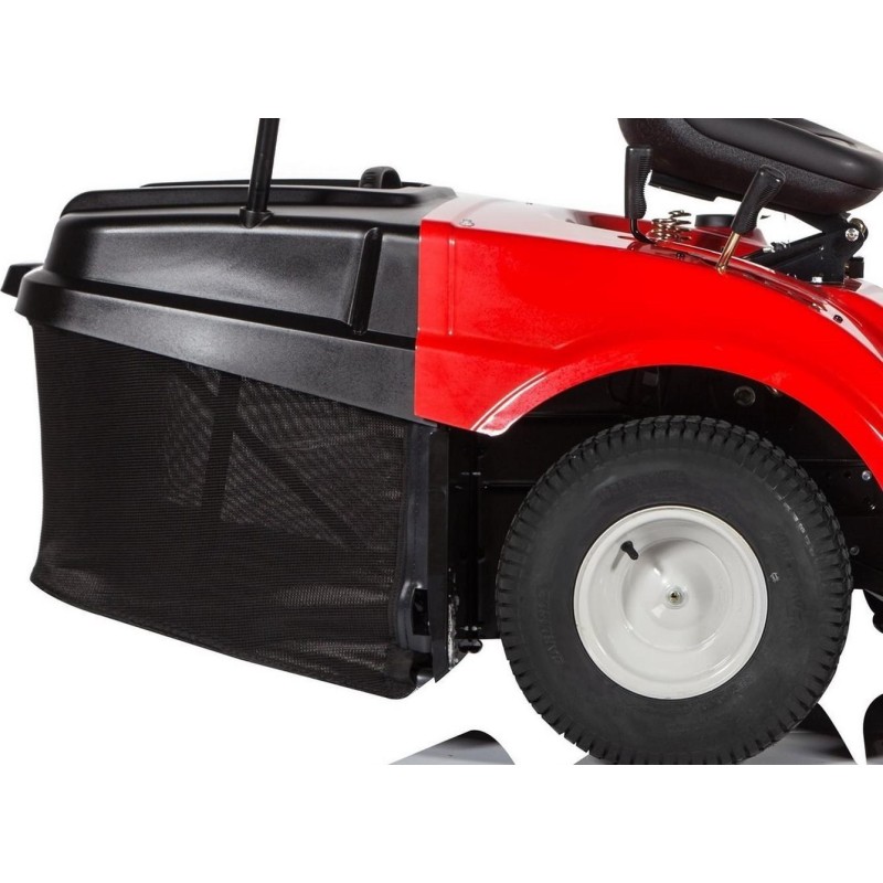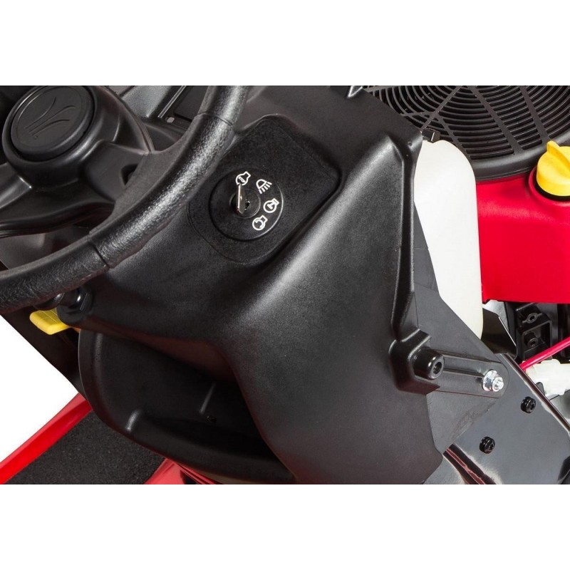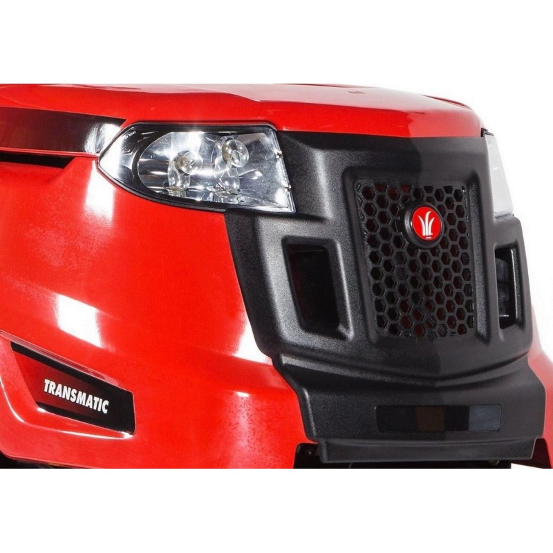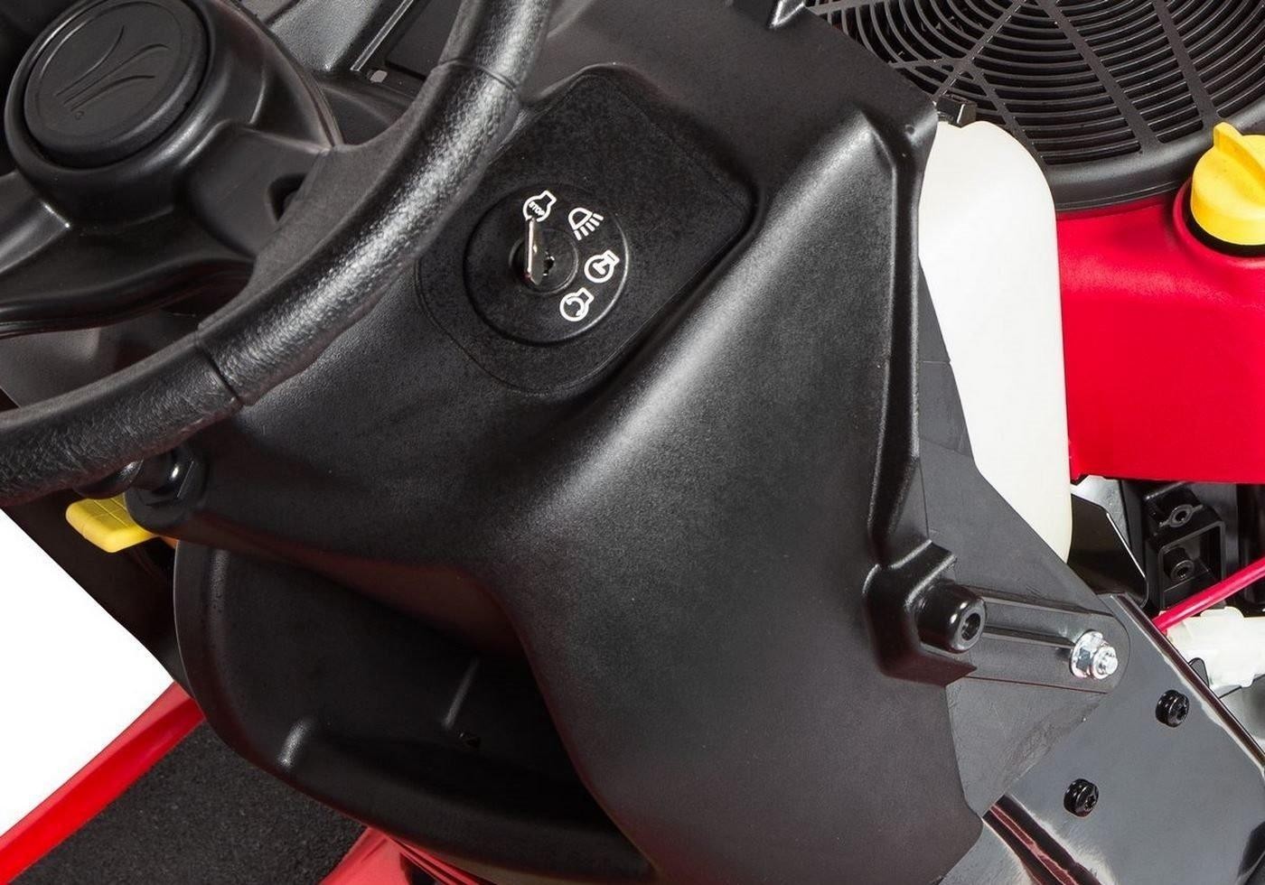 Motortyp: Verbrennungsmotor, Viertakt, obenliegende Ventile, mit Ölpumpe und Ölfilter. Motorhersteller: ThorX. Anzahl der Zylinder: 1. Hubraum: 547 cm³. Nennleistung: 9,4 kW. Anlasser: elektrisch. Getriebetyp: Transmatic. Anzahl der Gänge: Vorwärts: 6, Rückwärts: 6. Schnittbreite: 105 cm. Antriebsart: Eigenantrieb auf die Hinterräder. Minimaler Wenderadius: 46 cm. Messer-Einschaltsystem: manuell. Anzahl der Schneidmesser: 2. Funktionen: Grasfang, Heckauswurf (optional), Mulchen (optional). Art des Schneidsystems: mit zentral angeordnetem Aggregat. Schnitthöhenverstellung: 5-stufig. Art der Höhenverstellung: manuell. Minimale Schnitthöhe: 38 mm. Maximale Schnitthöhe: 95 mm. Fassungsvermögen des Grasfangkorbs: 240 l. Art des Grasfangkorbs: Netzkorb mit robustem Deckel. Art der Entleerung des Grasfangkorbs: manuell. Mähen im Rückwärtsgang: ja. Gehäuse: Stahlkarosserie, Motorhaube aus ABS-Kunststoff. Durchmesser der Vorder-/Hinterräder: 15x6,00" / 18x9,50". Räder zur Vermeidung von Rasenschäden: ja. Sitzart: Komfort. Lenkrad: ergonomisch mit weicher Oberfläche. Frontscheinwerfer: ja, Halogen. Frontstoßstange: nein. Heckkupplung: optional. Tempomat: nein. Gehäuse-Reinigungsfunktion: nein.