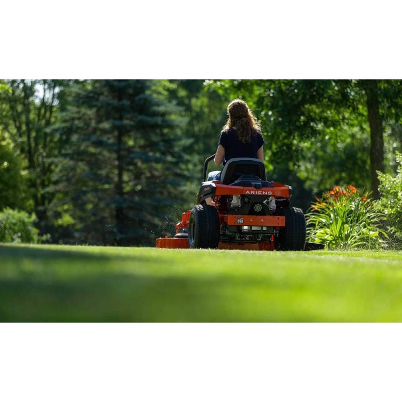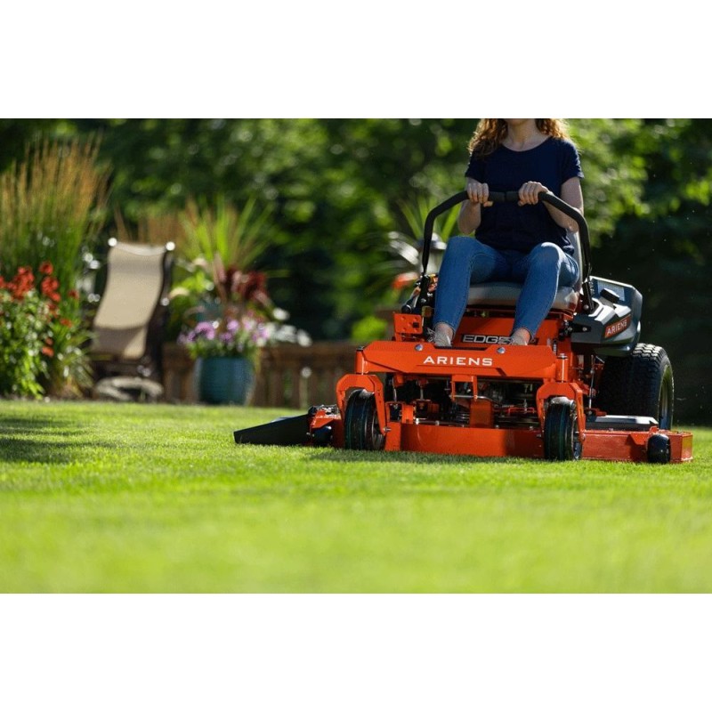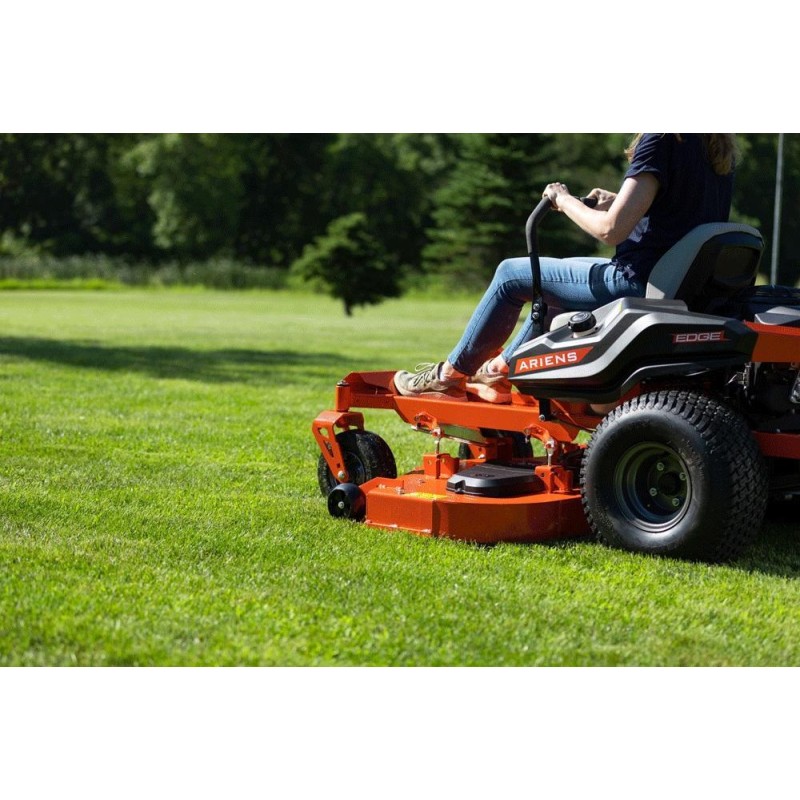 Das Modell Edge 42 gehört zur Ariens Zero-Turn-Serie, was bedeutet, dass Sie Ihren Rasen doppelt so schnell mähen können wie mit einem herkömmlichen Rasentraktor. Anstelle einer herkömmlichen Lenkung wird der Zero-Turn-Mäher über ein unabhängiges Getriebe von den Hinterrädern angetrieben und gesteuert, was eine 180°-Drehung auf der Stelleam Ende der Mähreihe ermöglicht Schluss mit Dreipunkt-Wendemanövern, dem Überfahren bereits gemähter Flächen oder Zeitverschwendung beim Manövrieren! Sie können Beete, Bäume und andere Hindernisse im Garten mühelos umfahren, indem Sie nur zwei Griffe zum Lenken, Bremsen und Steuern verwenden.