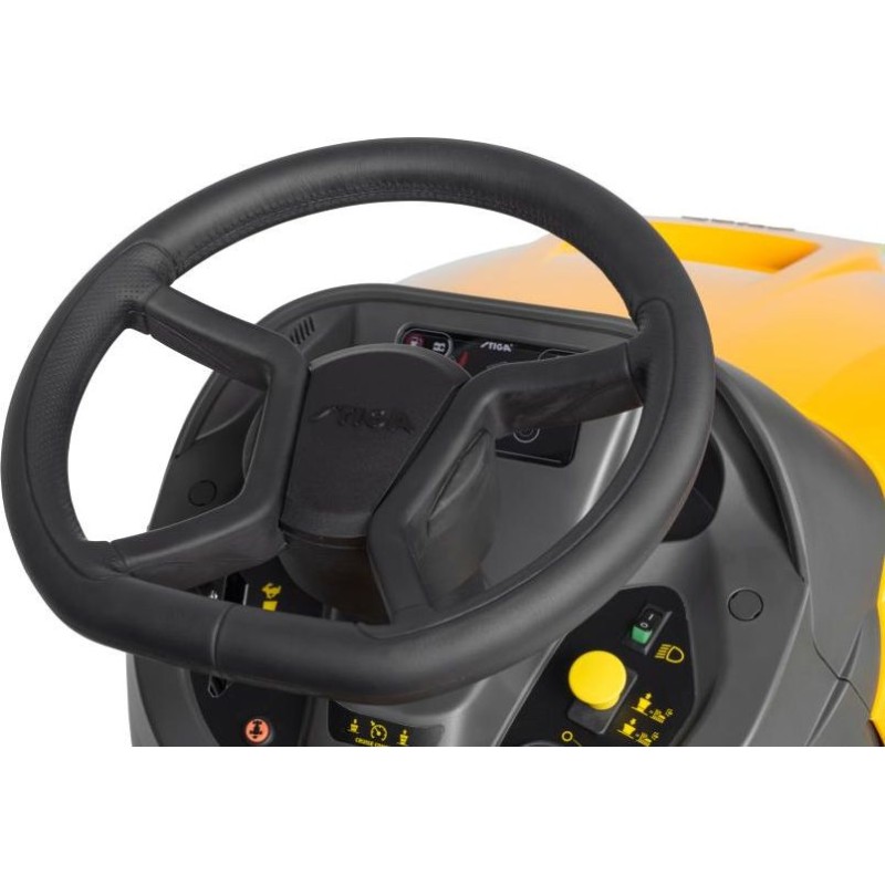 Dank der weichen Oberfläche des Stiga Premium-Lenkrads, des ergonomischen Comfort Plus-Sitzes mit Armlehnen und der Tempomat-Funktion genießen Sie als Fahrer höchsten Komfort. Fahrkomfort ist unverzichtbar für alle, die regelmäßig zeitaufwändige Mäharbeiten verrichten.