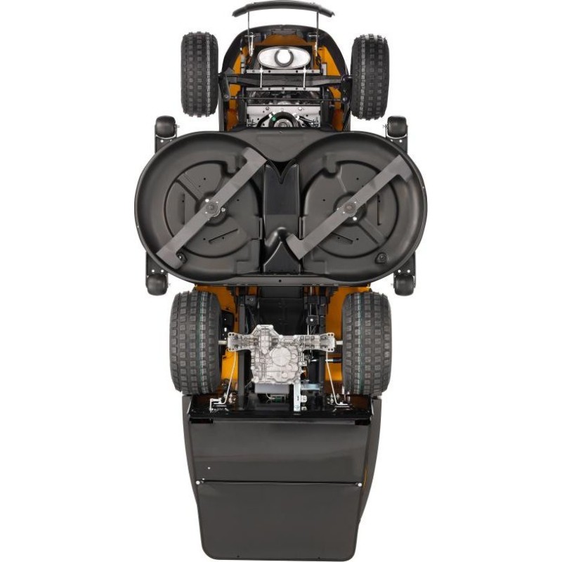 Das 122 cm breite Mähaggregat ist mit zwei synchronisierten Messern ausgestattet, die die Grasaufnahmekapazität optimieren. Die Messer werden elektromagnetisch geschaltet. Die Schnitthöhe kann aus sieben verschiedenen Positionen gewählt werden.