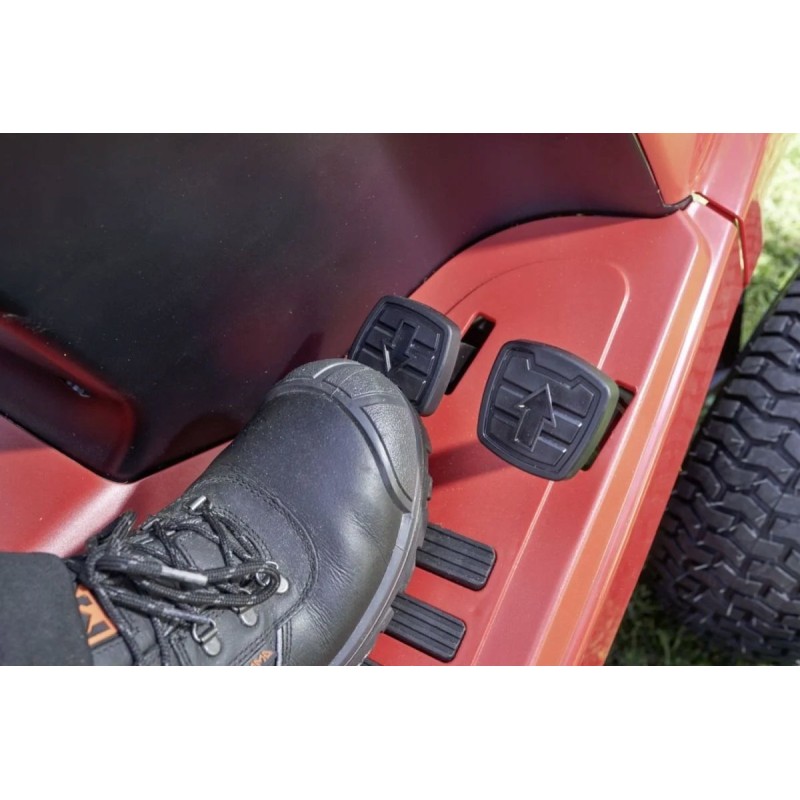 Der AL-KO Gartentraktor T 22-105.4 HDD-A V2 wird von einem hydrostatischen Getriebe angetrieben, dessen Laufruhe selbst die anspruchsvollsten Nutzer zufriedenstellt. Vor allem ist es ein leises Aggregat, das sich durch außergewöhnliche Laufruhe auszeichnet. Das neue Traktormodell verfügt über einen optimierten Antriebsstrang, der die Leistung der Maschine verbessert und höhere Geschwindigkeiten (11 km/h) ermöglicht. Die verbesserte Führung des Antriebsriemens ermöglicht eine effektive und optimale Übertragung der erhöhten Leistung auf die Hinterachse. Das bedeutet nicht nur schnelleres Fahren, sondern auch schnelleres Mähen – für maximale Leistung. Die Funktion des Getriebes wird über zwei nebeneinander angeordnete Pedale gesteuert. Je stärker man das Pedal betätigt, desto schneller wird die Maschine; lässt man den Druck nach, wird sie langsamer.