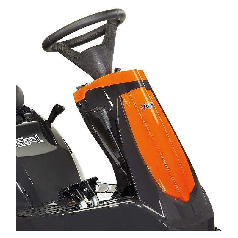 • Teleskophebel zum Entleeren des Auffangbehälters: Er ist vom Fahrersitz aus leicht erreichbar und ermöglicht das Kippen und Entleeren des vollen Auffangbehälters, ohne die Muskeln zu überlasten oder den Oberkörper zu verdrehen.