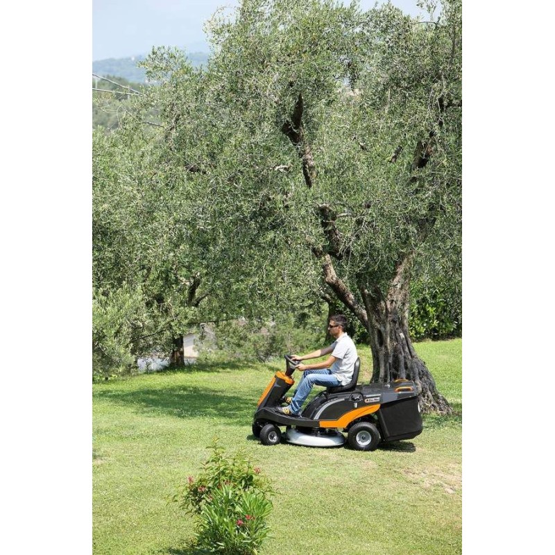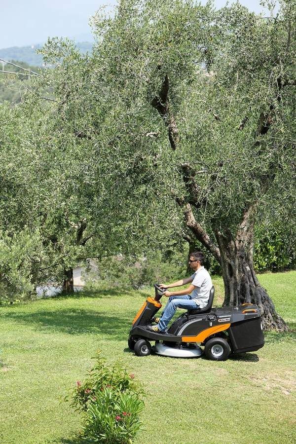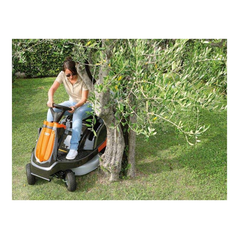 • Der sehr kleine Wenderadius erleichtert das Manövrieren und Mähen selbst in engsten Bereichen.