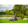 Der Rasentraktor ist mit einem ergonomischen Sitz mit hoher Rückenlehne ausgestattet, der auch bei längerem Einsatz Komfort bietet. Die natürliche Luftzirkulation und die Möglichkeit, die Sitzhöhe zu verstellen, machen die Arbeit zu einem echten Vergnügen.