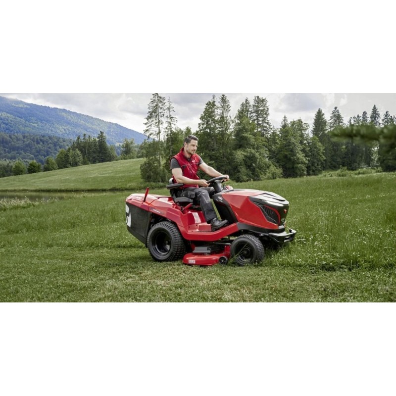 Der AL-KO Gartentraktor T 22-105.4 HD-A V2 mit Differenzialsperre ist einer der größten und leistungsstärksten Traktoren der Premium-Serie. Das futuristische Design, zahlreiche Annehmlichkeiten und die unglaubliche Leistung ermöglichen schnelles und komfortables Arbeiten. Der bis ins kleinste Detail ausgefeilte Antrieb und der bewährte Motor AL-KO Pro 700 v2 heben die Maschine von der Konkurrenz ab. Der starke und robuste Rahmen garantiert die Stabilität des Traktors und ein sicheres Gefühl beim Mähen, während der tief liegende Schwerpunkt die Kippgefahr der Maschine selbst an steilen Hängen minimiert. AL-KO liefert die Maschine komplett aus, inklusive LED-Beleuchtung, Mulcheinlage und Mähspeicherfunktion. Der Traktor kann zusätzlich mit Armlehnen, Stoßstange, Tempomat und Smart-Cockpit ausgestattet werden.