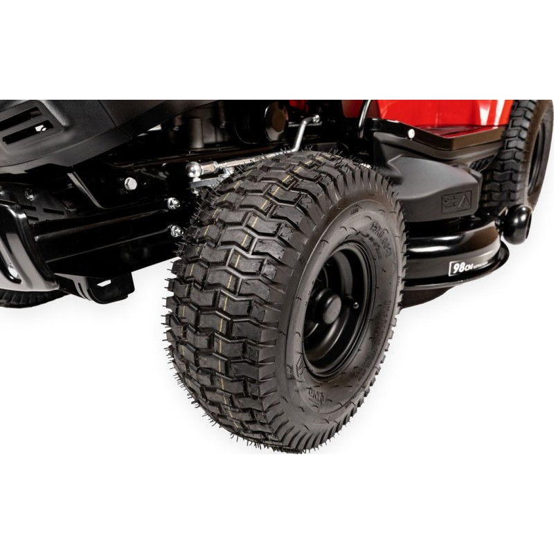• Die breiten Räder verfügen über ein spezielles Profil, das das Gras während der Arbeit nicht beschädigt.