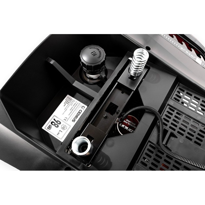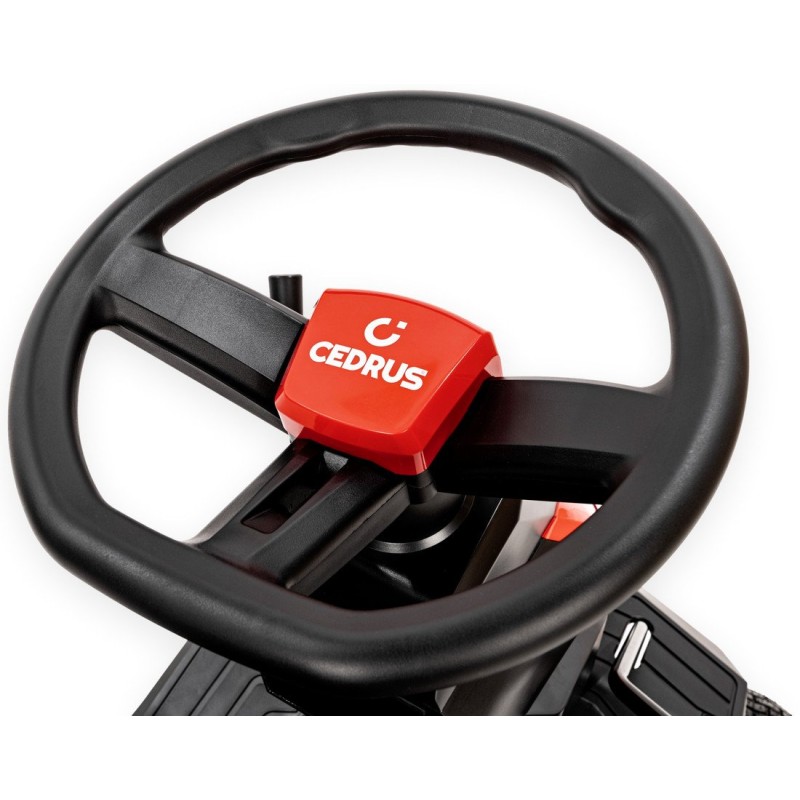 Der Rasentraktor Cedrus C-TRAC 65HC ist mit einem automatischen hydrostatischen Getriebe ausgestattet, das die volle Kontrolle über die Fahrgeschwindigkeit gewährleistet. Der Benutzer kann mit einer Geschwindigkeit von bis zu 9,3 km/h vorwärts und 3 km/h rückwärts fahren, was das Manövrieren erleichtert.