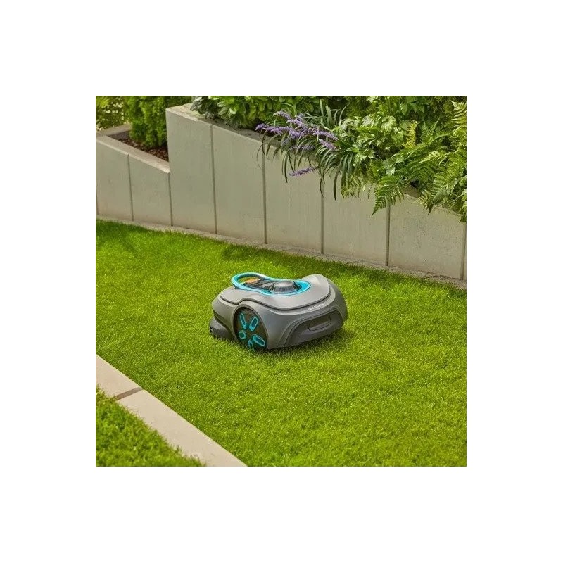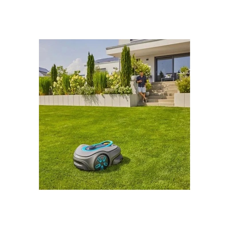 Der Gardena-Mähroboter ist mit Kollisionssensoren ausgestattet, die sowohl das Gerät als auch die Umgebung vor Beschädigungen schützen. Im Lieferumfang enthalten sind außerdem eine Ladestation und ein Smart Gateway, wodurch die Smart-Funktionen voll genutzt werden können.