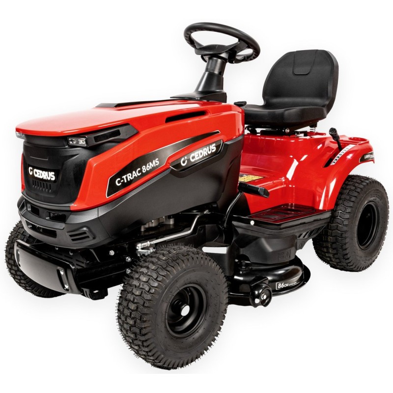 Der Rasentraktor Cedrus C-TRAC-86MS ist ein hervorragendes Gerät für die effektive Rasenpflege, bestimmt für Personen, die Wert auf Leistung und Vielseitigkeit bei der Arbeit legen. Dieses Modell, das auf dem 5,6-kW-Motor Loncin LC1P85FA basiert, bietet hohe Leistung und Zuverlässigkeit, ideal für Mäharbeiten. Robuste und zugleich kompakte sowie wendige Rasenmäher. Ideal für den häufigen Einsatz im privaten Umfeld auf mittelgroßen Flächen. Sie wurden unter Verwendung derselben technologischen Lösungen entwickelt wie die Modelle für den professionellen Einsatz und vereinen hervorragende Leistung mit Komfort, wodurch die Arbeit zum reinen Vergnügen wird.
