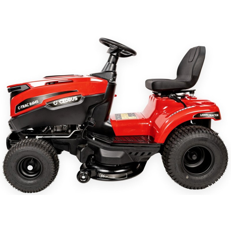 CEDRUS C-TRAC-86MS GARTENTRAKTOR MIT SEITLICHEM AUSWURF SELBSTFAHRENDER RASENMÄHER ist ein hervorragendes Gerät zum Rasenmähen in Hausgärten, Wohnanlagen und auf Grundstücken. Es ist mit allen notwendigen Funktionen ausgestattet. Das vorgestellte Modell zeichnet sich zudem durch ein hervorragendes Preis-Leistungs-Verhältnis aus. Gartentraktor mit einem hochwertigen 4-Takt-Motor von LONCIN mit 10 PS. Mähmesser mit einer Arbeitsbreite von 86 cm und seitlichem Grasauswurf. Für präzises Mähen sorgen zwei gegenläufige Stahlmesser mit einer Schnitthöhenverstellung von 30–90 mm. (7 Positionen) Dank des robusten Getriebes erfolgt die Beschleunigung sanft und komfortabel und bietet eine hervorragende Geschwindigkeitskontrolle.Das Gerät verfügt selbstverständlich über einen Elektrostarter, ein Mulchsystem sowie eine Heckkupplung.
