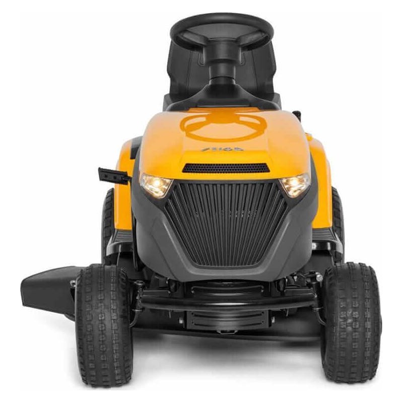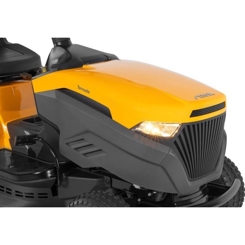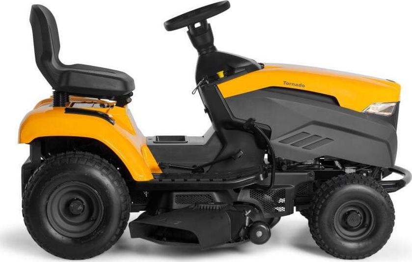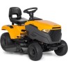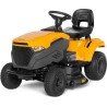 Benzin-Gartentraktor mit einem STIGA-Motor mit 432 cm³ Hubraum, einem 98 cm breiten Mähaggregat und zwei Messern.
