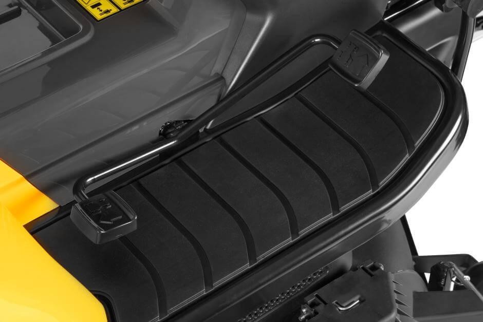 • 98 cm Mähaggregat und 2 Räder, die ein Abflachen des Rasens verhindern