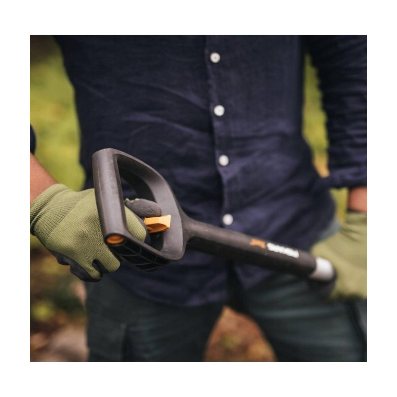 Der breite, profilierte Kopf erleichtert den Transport von Materialien. Der komfortable, D-förmige Push-Pull-Griff mit Softgrip™-Beschichtung sorgt für einen sicheren Halt und ergonomisches Arbeiten.