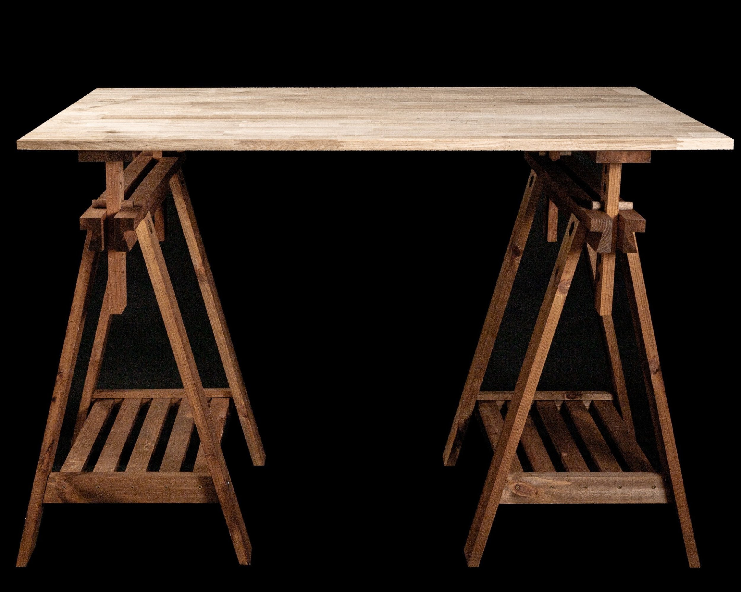 Im Angebot enthalten ist ein verstellbarer Holz-Bock ohne Tischplatte.