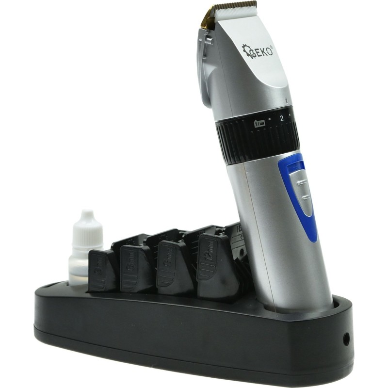 Dank der Keramikklinge und der feststehenden Titanklinge garantiert er einen schnellen und präzisen Schnitt. Die Schnittlänge lässt sich mit dem Drehknopf am Gerät im Bereich von 0,8 bis 2,0 mm einstellen. Im Lieferumfang sind Aufsteckkämme mit einer Schnittlänge von 3 mm, 6 mm, 9 mm und 12 mm enthalten, die mit der Schermaschine verwendet werden können.