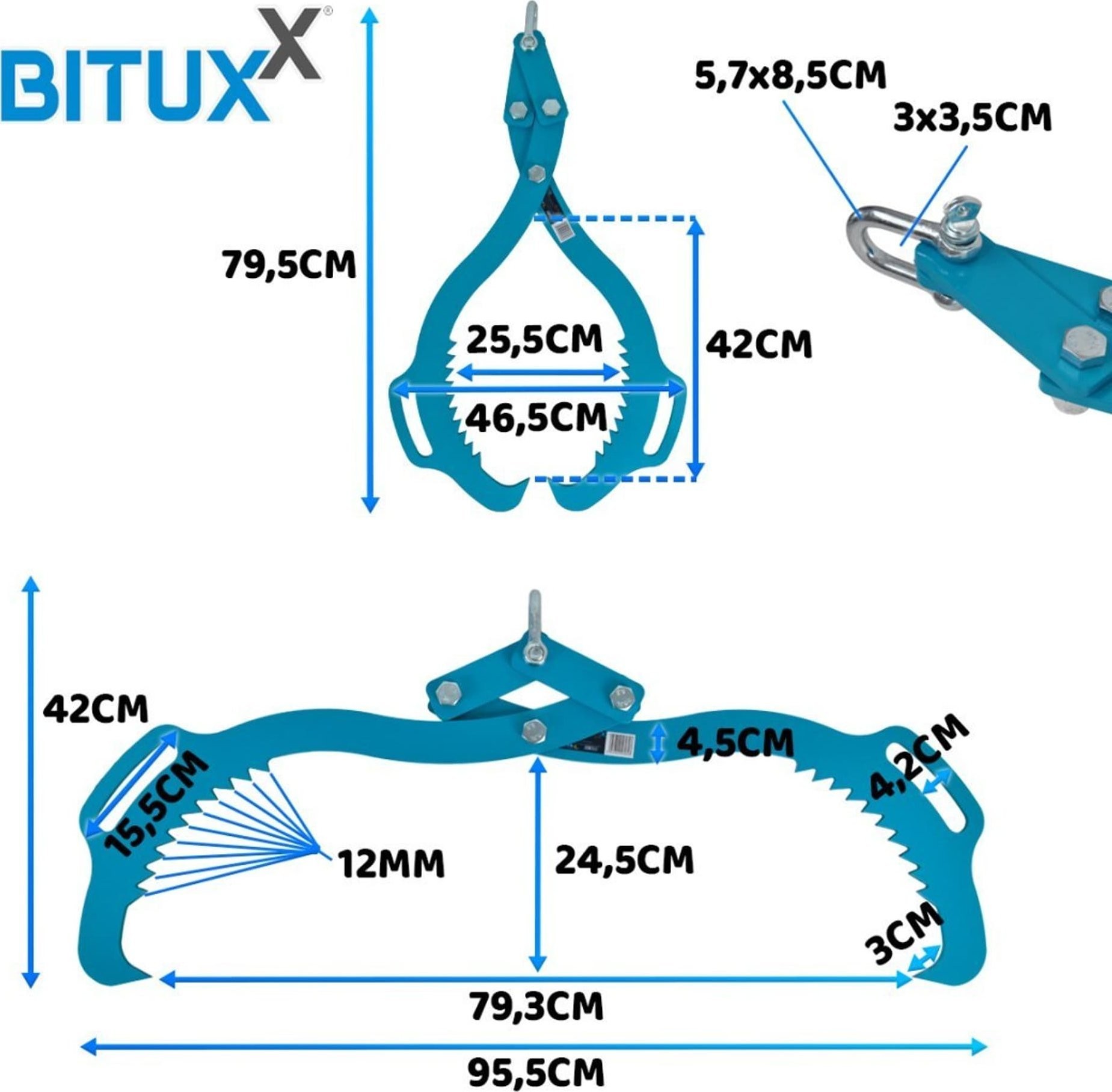 Bituxx Holzgreifer 620 mm, 1000 kg, selbstspannende Zange von Bituxx
