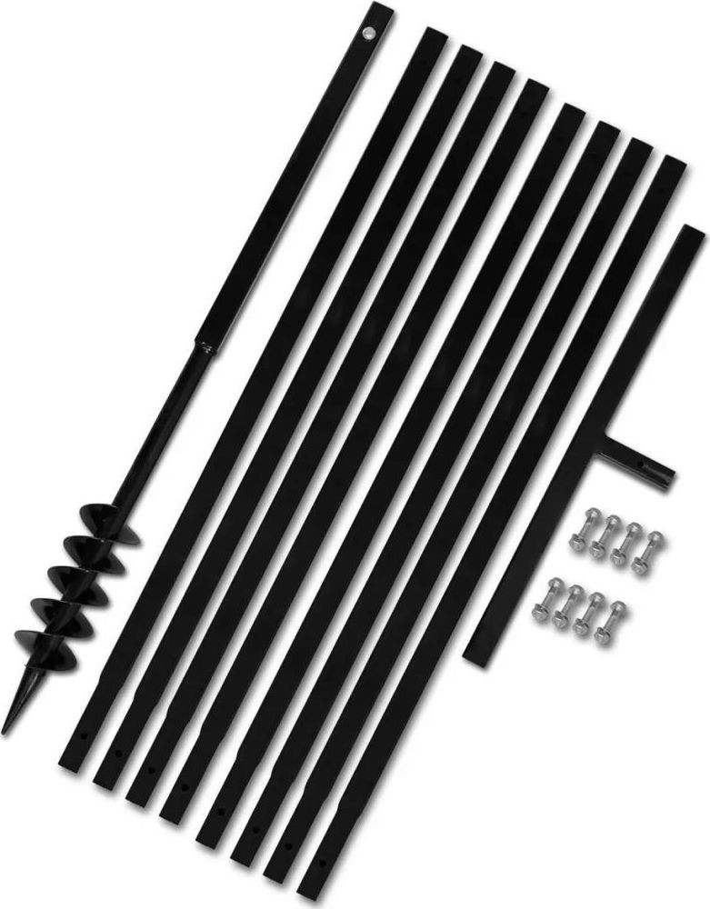 Im Lieferumfang enthalten sind der Erdbohrer, der Griff, 8 Verlängerungsrohre und Schrauben.