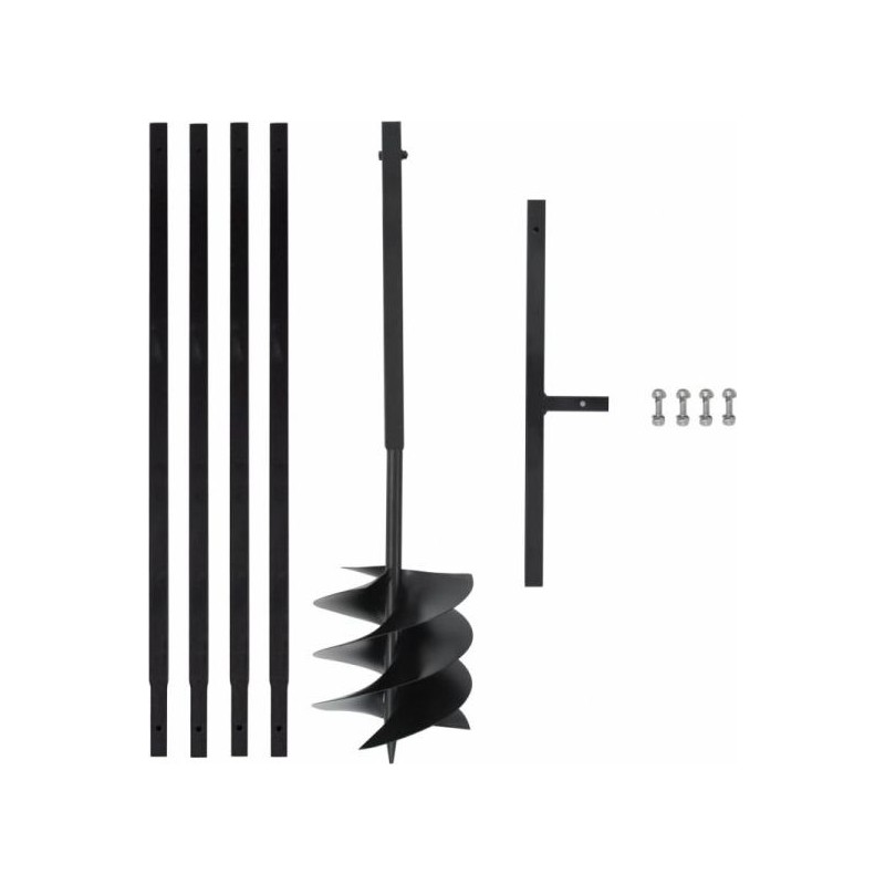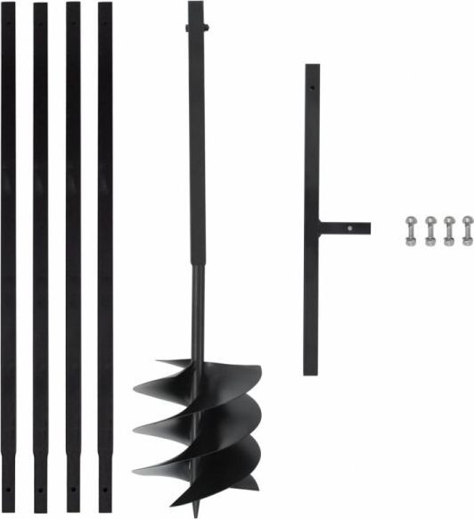 Im Lieferumfang enthalten sind der Erdbohrer, der Griff, 4 Verlängerungsrohre und Schrauben.