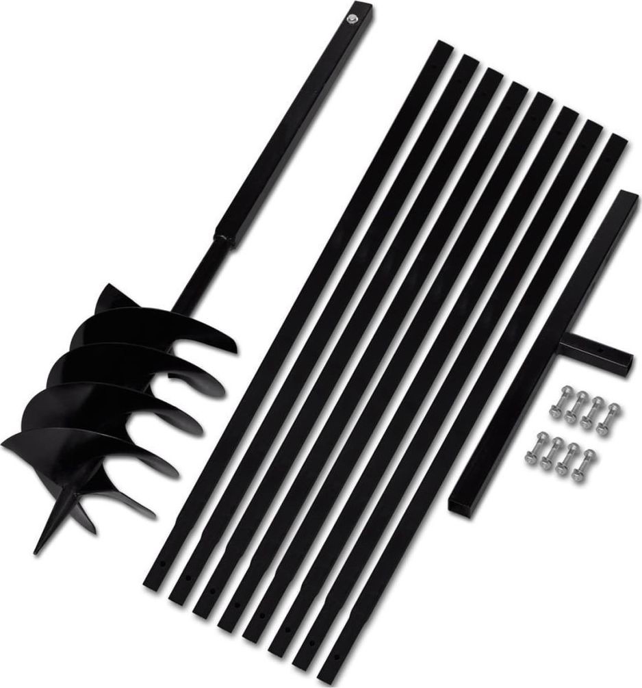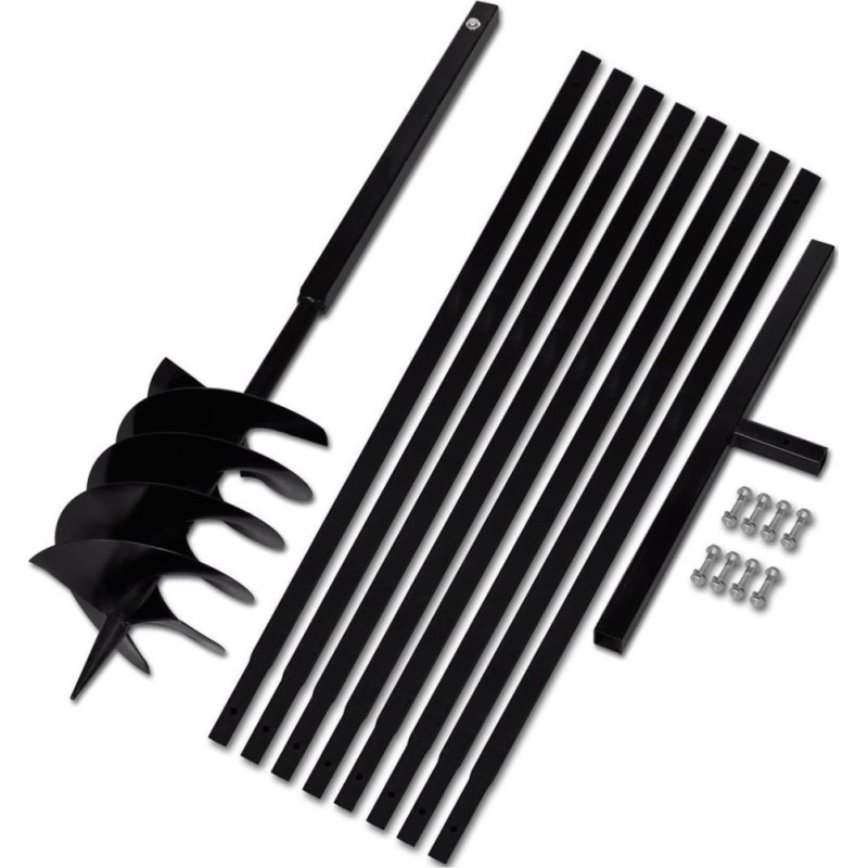 Im Lieferumfang enthalten sind der Erdbohrer, der Griff, 8 Verlängerungsrohre und Schrauben.