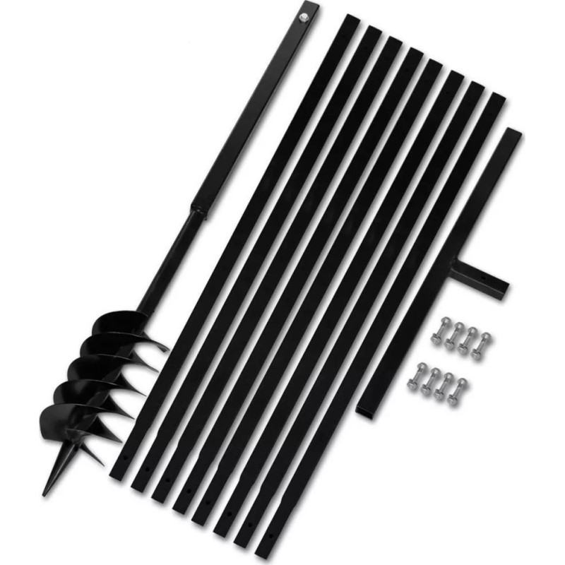 • Im Lieferumfang enthalten sind ein Erdbohrer, ein Griff, 8 Verlängerungsrohre und Schrauben.