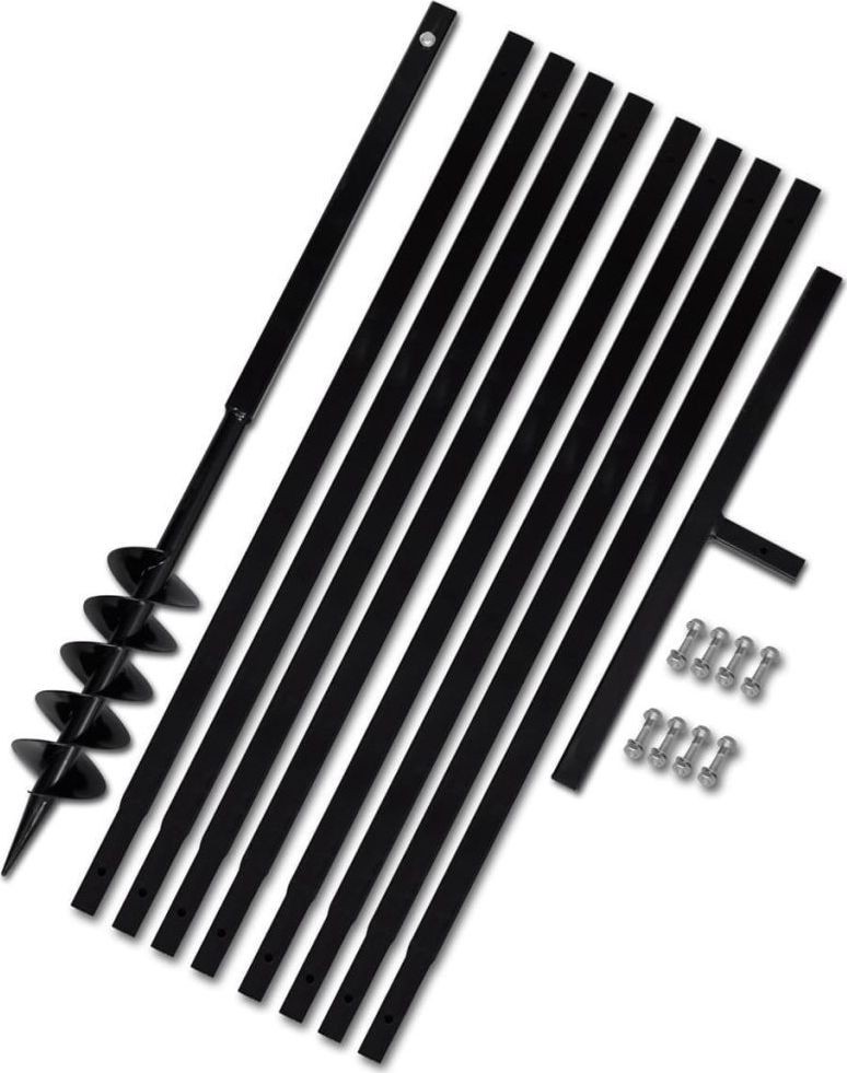 • Im Lieferumfang enthalten sind ein Erdbohrer, ein Griff, 8 Verlängerungsrohre und Schrauben.