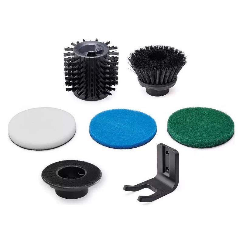 Die kabellose Oberflächenbürste PICOBELLA ist mit vielfältigem Zubehör ausgestattet. Im Set enthalten sind 1x die Bürste SOFT 120/50 für die schonende Reinigung sowie 1x die Bürste MEDIUM 90/20 für strapazierfähige Oberflächen. Zusätzlich erhalten Sie 3 verschiedene Reinigungspads aus Melaminschaum (ideal zur Beseitigung hartnäckiger Verschmutzungen), Mikrofaser und Küchenfaser, geeignet für glatte, empfindliche sowie strapazierfähige Oberflächen. Für volle Funktionalität sind außerdem 1x Padhalter und ein praktischer, platzsparender Wandhalter enthalten.