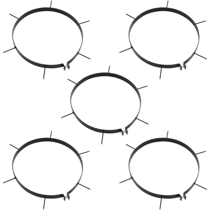 Farbe: schwarz Material: Eisen Abmessungen: 30 x 2,5 cm (Durchmesser x Höhe) Länge der Stacheln: 6 cm Anzahl der Stacheln pro Ring: 6 Lieferumfang: 5 x Ring für den Aerator