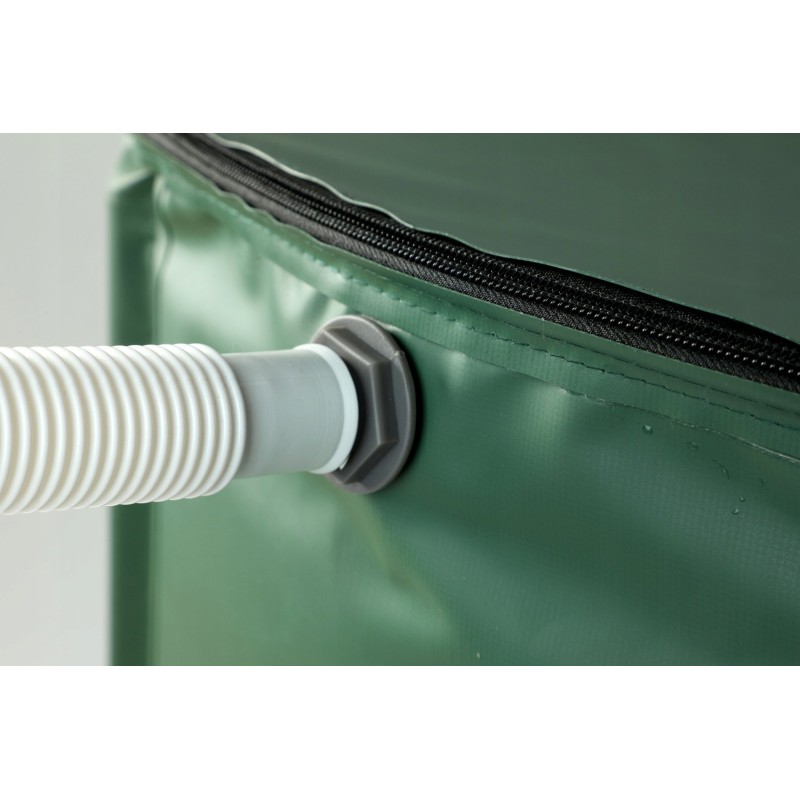 Der zusammenklappbare Regenwassertank besteht aus hochwertigen Materialien, ist sehr robust und nützlich. Dank der sorgfältigen Verarbeitung ist der Tank in der Lage, viele Jahre lang störungsfrei zu dienen. Die Konstruktion und das Material sind witterungsbeständig. Der Tank wird an die Dachrinne angeschlossen und dient zum Auffangen und Speichern von Regenwasser für die spätere Verwendung, z. B. zur Gartenbewässerung, zum Autowaschen und zur Reinigung. Der Tank verfügt über einen Filter, der verhindert, dass Blätter und andere Verunreinigungen ins Wasser gelangen.